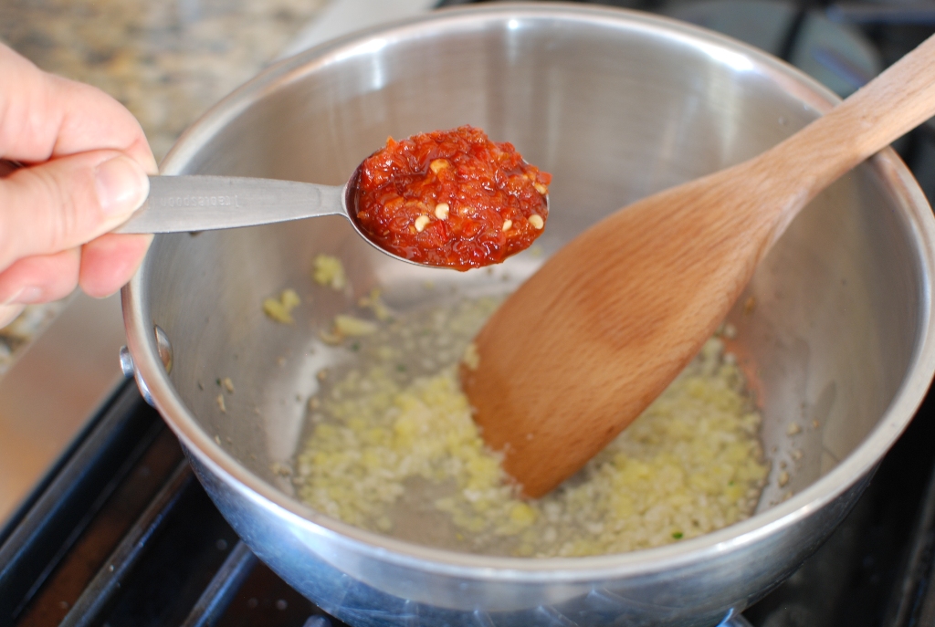 - 1 tablespoon fresh ground garlic paste Sambal Oelek found in grocery store