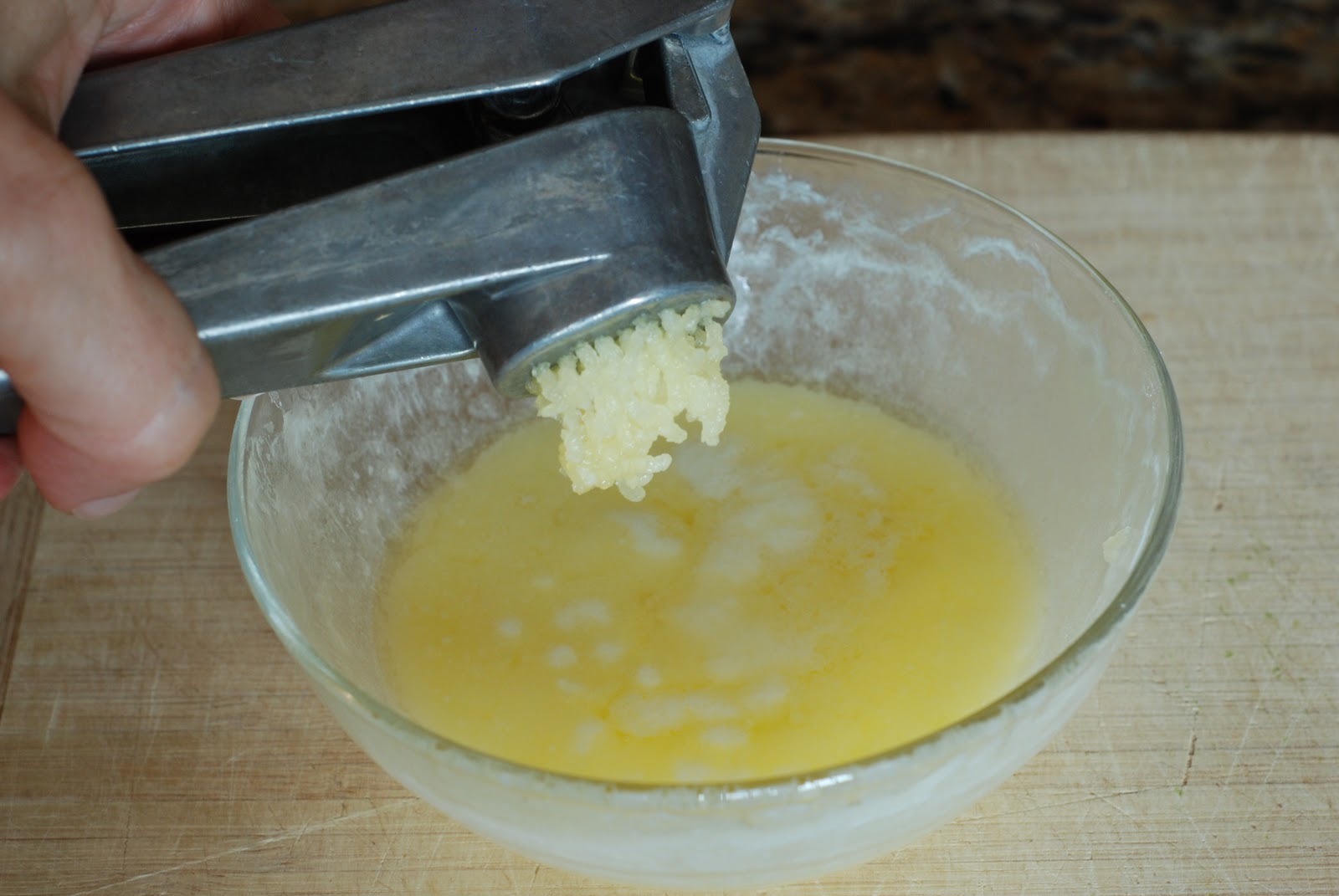 Add one garlic clove that has been minced. Set aside. I like to let this stand so the butter becomes infused with garlic.