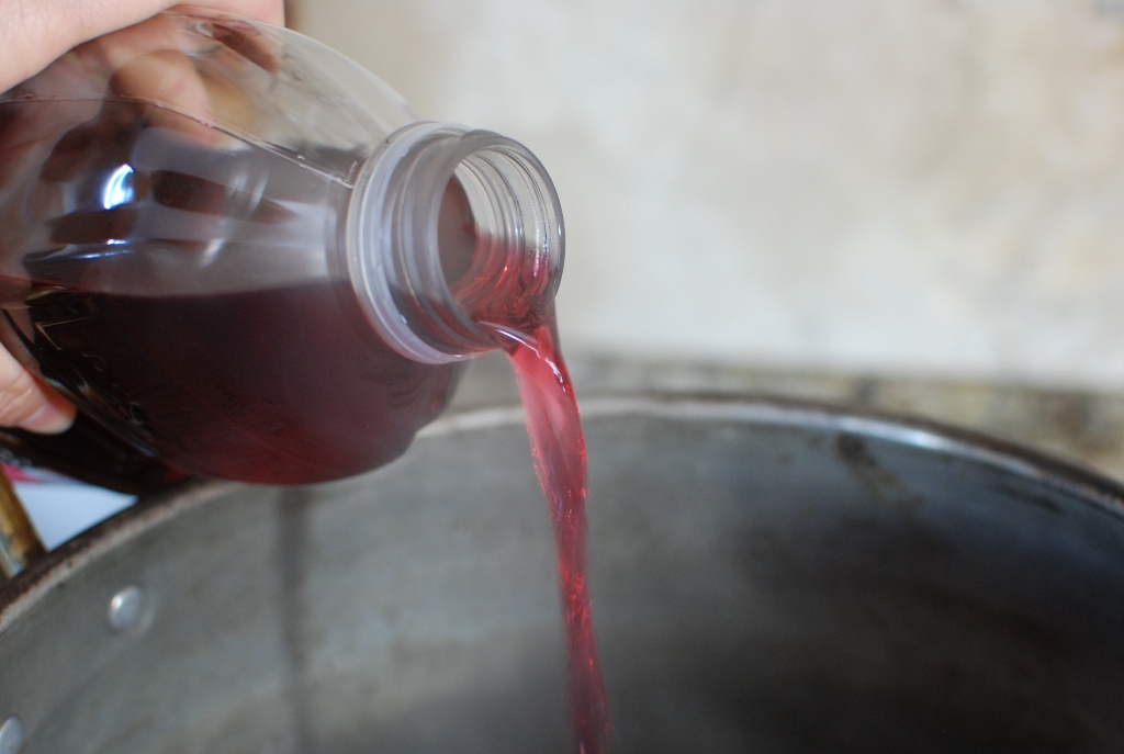 And the orange juice concentrate. Bring the wassail to a simmer. I don’t like to let my wassail boil because