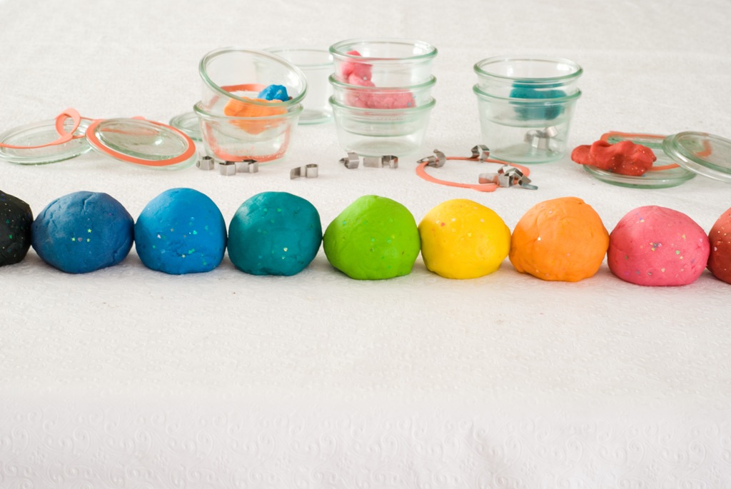I've never made play dough before. Everyone I know has…does that make me a bad nanny? 🙂 I'm going to have to make this with the girls this summer. Adding glitter would be perfect for those crazy girls. And I have to say, I love the colors! They are so vivid.