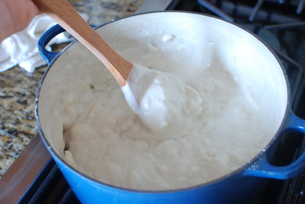 Stir constantly while cooking. You will notice that the mixture will begin to thicken and it will start to look really lumpy. Don’t fret. Just keep on stirring.