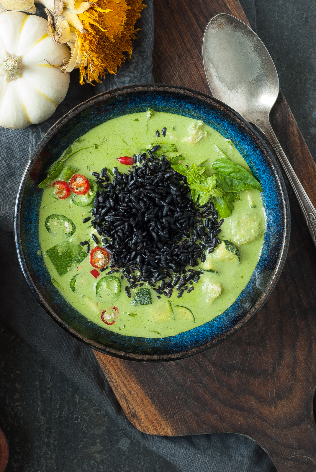 I love green curry and this is something I will definitely try. The colour, with the black rice on top does make it spooky. I am pinning this on my Halloween board ๐
