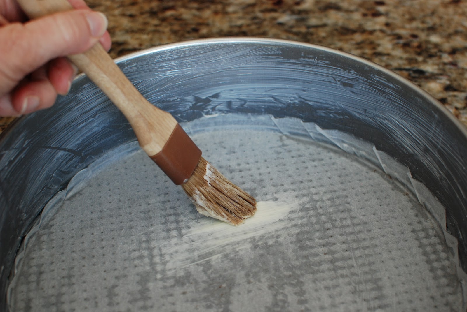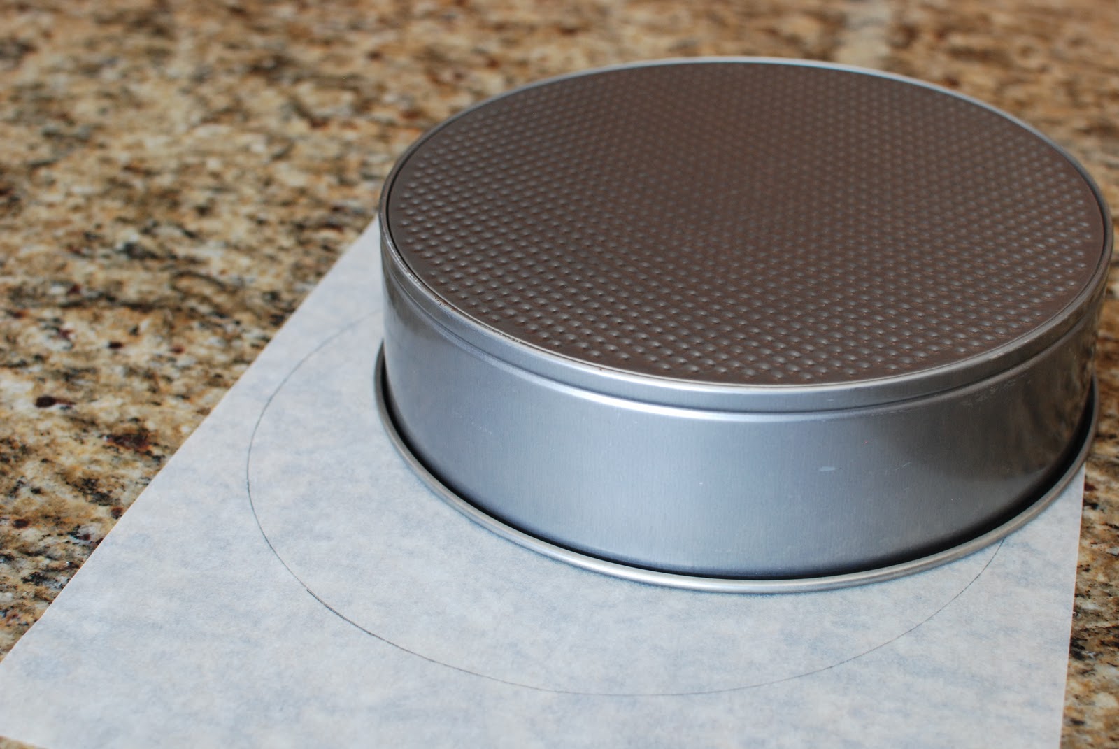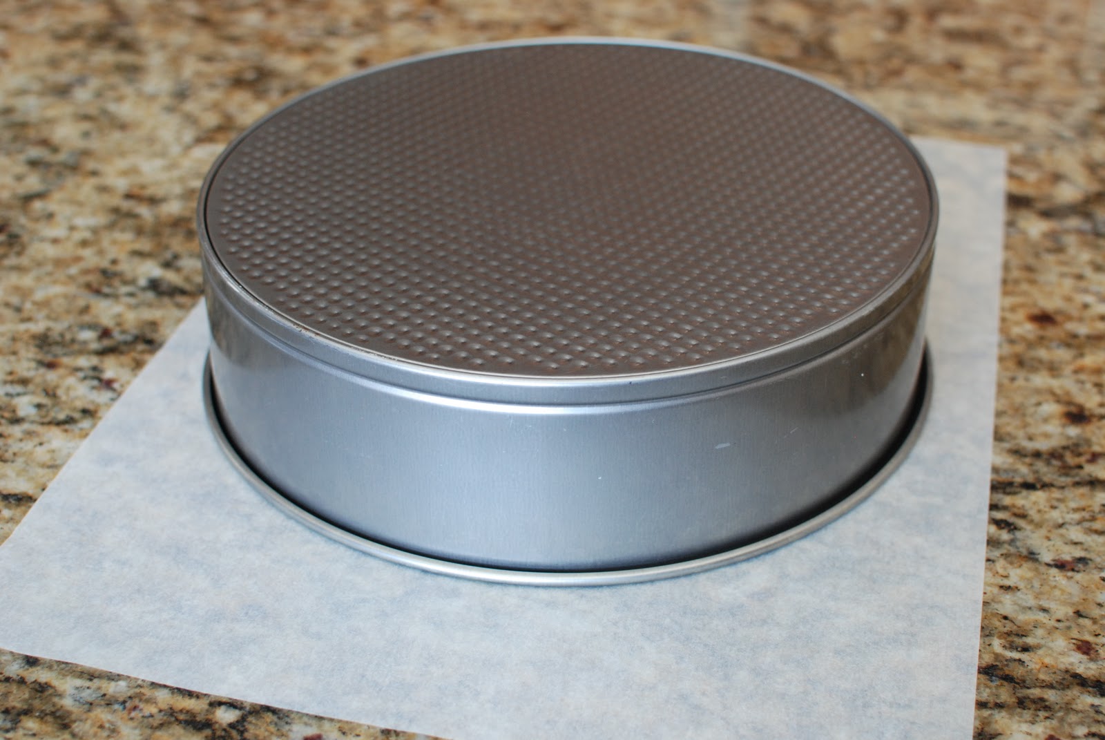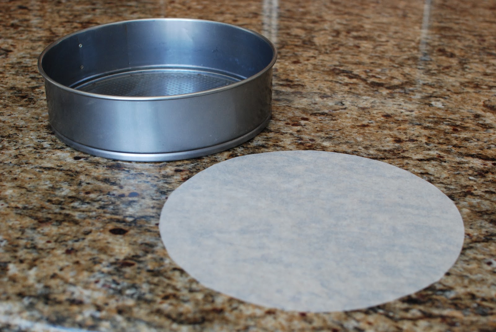 Press the parchment circle to the bottom of the springform pan.