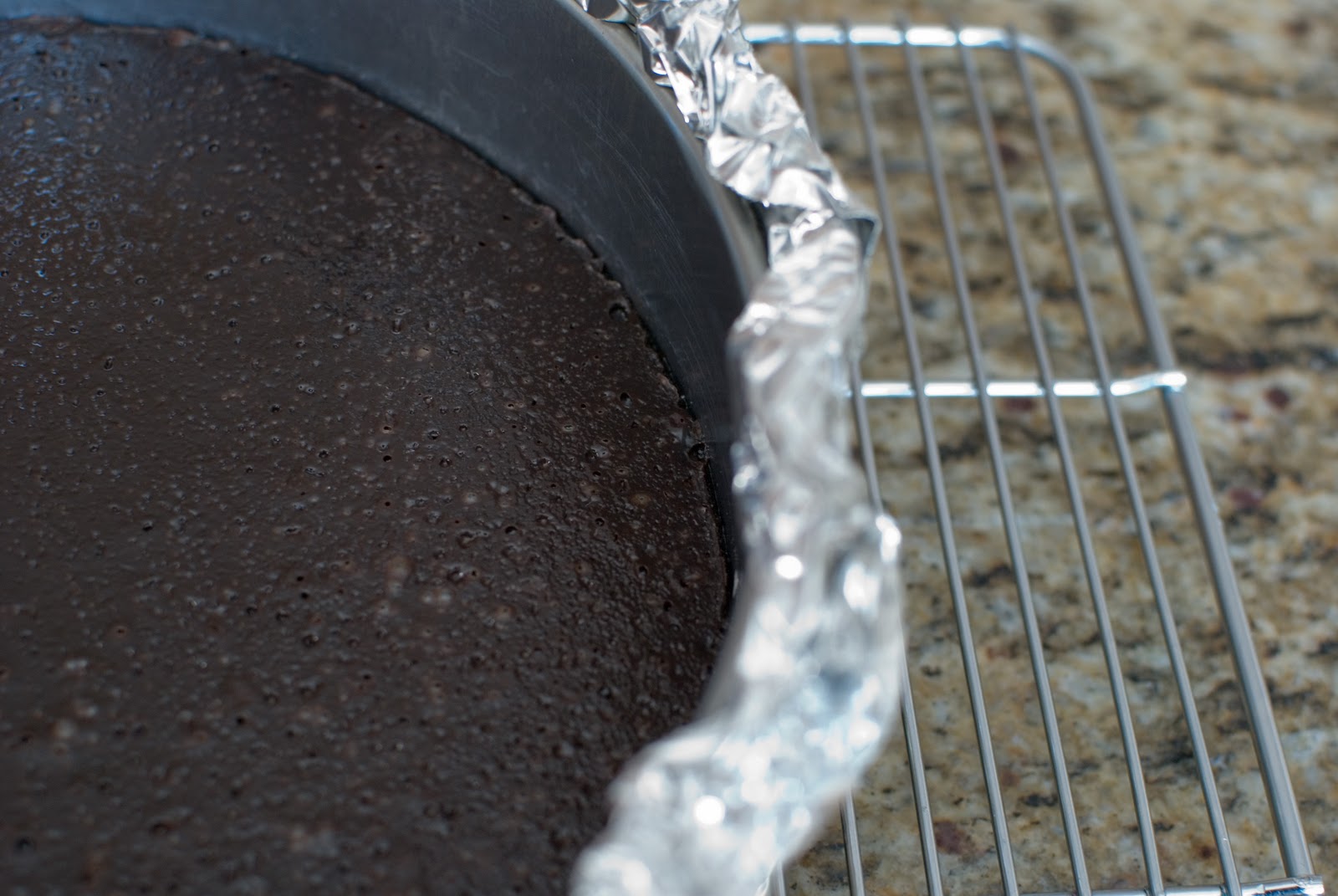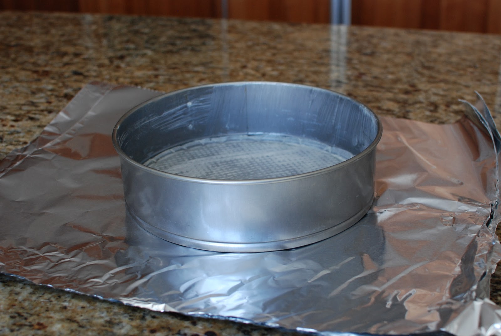 Place the springform pan on top of the three sheets of foil.