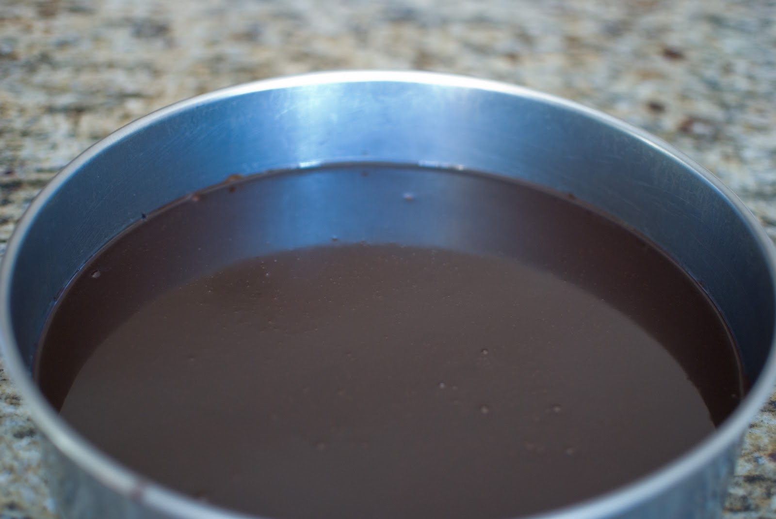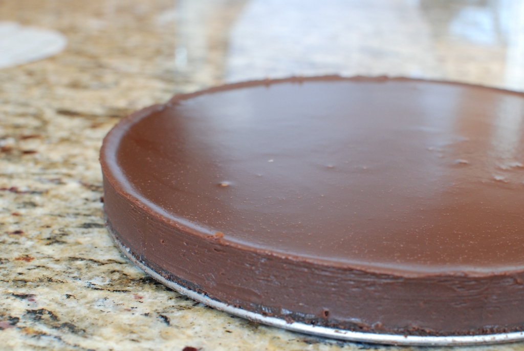 Tap the pan on the counter to remove any air bubbles that might be in the ganache.