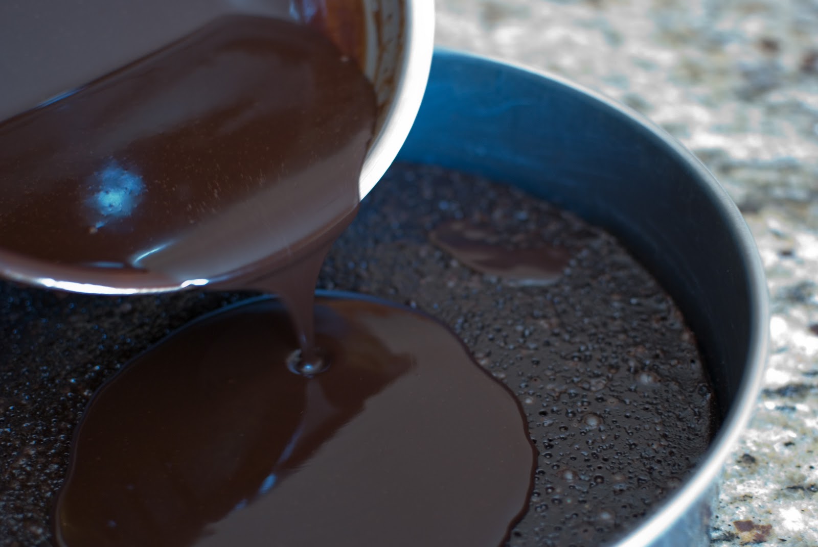 Pour to chocolate mixture into the prepared pan.