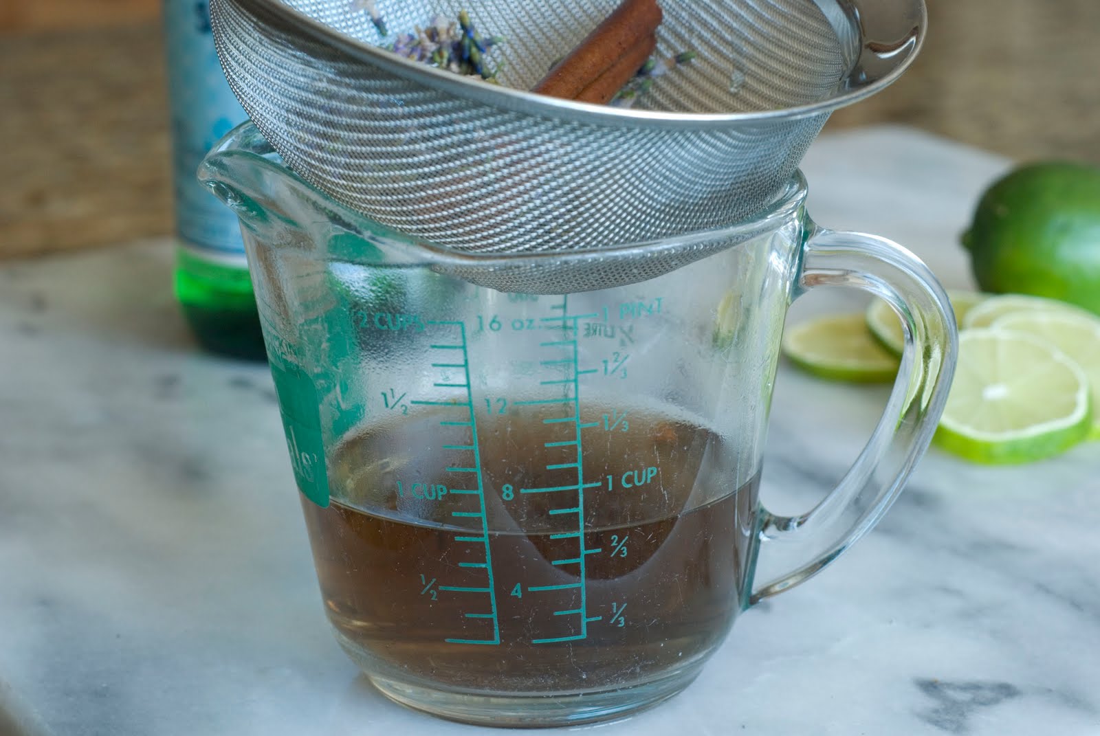I am now calling this a brew. Strain the brew into a bowl or measuring cup.