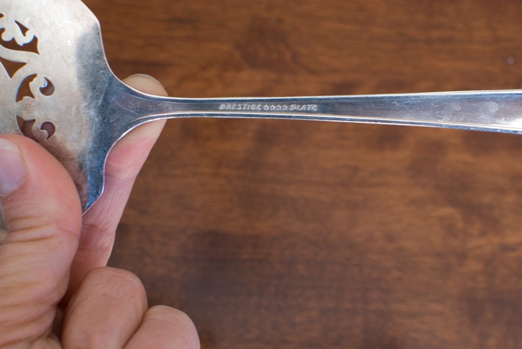 I decided to start with my grandmother’s serving piece. I turned over the server and found the name of the pattern “Prestige”.