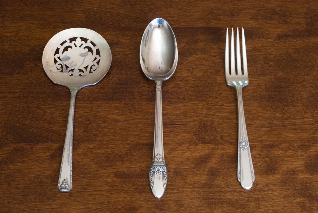 It all began with three odd pieces of silver-plated flatware tucked into a drawer of my china cabinet. A tomato server, a spoon, and a fork.