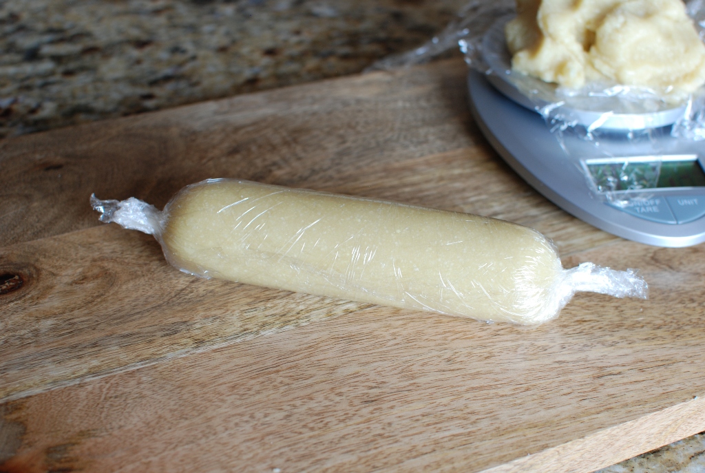 I live to divide the paste in half. I make 2 10-ounce longs. Wrap in plastic wrap and refrigerate until ready to use.