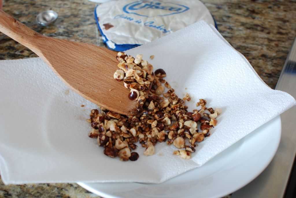 Remove the hazelnuts from the pan to an paper towel. Set aside.