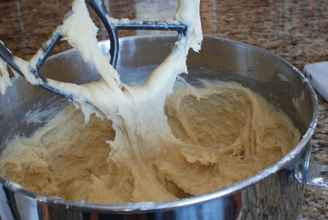 - Don’t add too much flour. The recipe calls for 7-8 cups of all-purpose flour. Not all measuring cups measure exactly the same. That’s why it’s a good idea to add the flour 1 cup at a time. Watch your dough carefully and notice when the dough begins to pull away from the sides of the bowl. Touch the dough. If the dough is still really sticky then slowly add in more flour 1/4 cup at a time. Remember the dough has a lot of butter which will make the dough very soft and pliable and once refrigerated the butter will harden making the dough very easy to roll out.