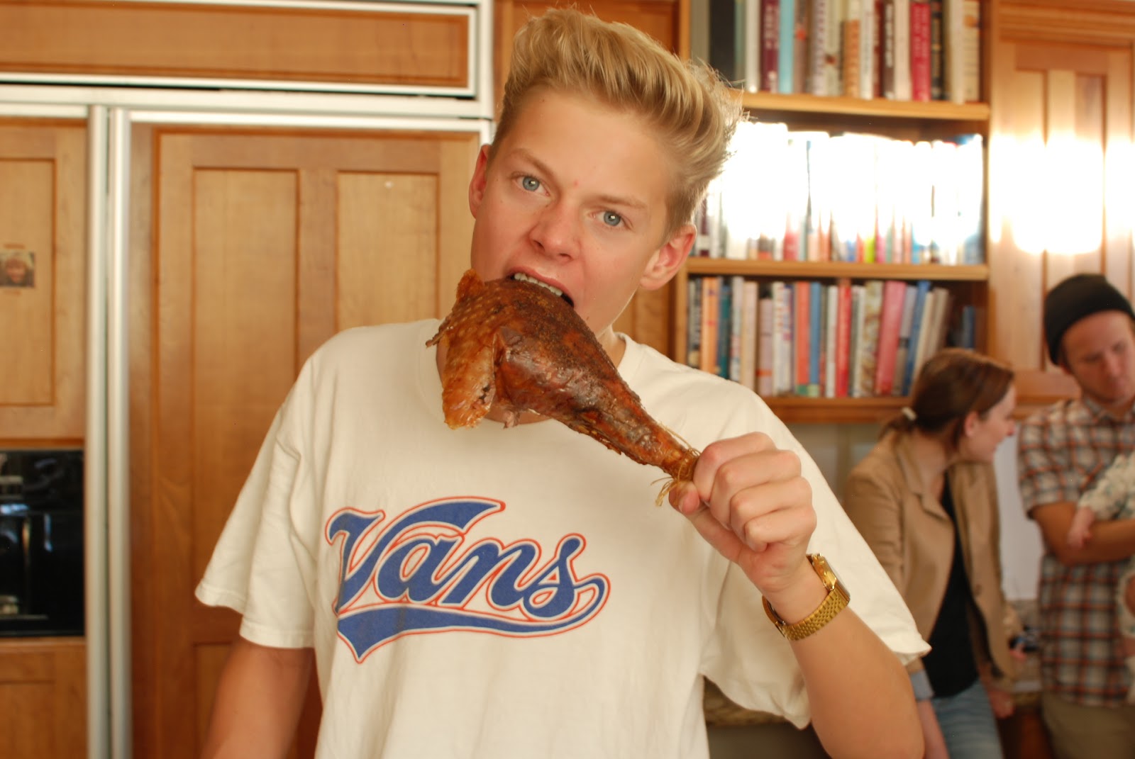 This is my nephew, Daniel, attempting to eat the drumstick.