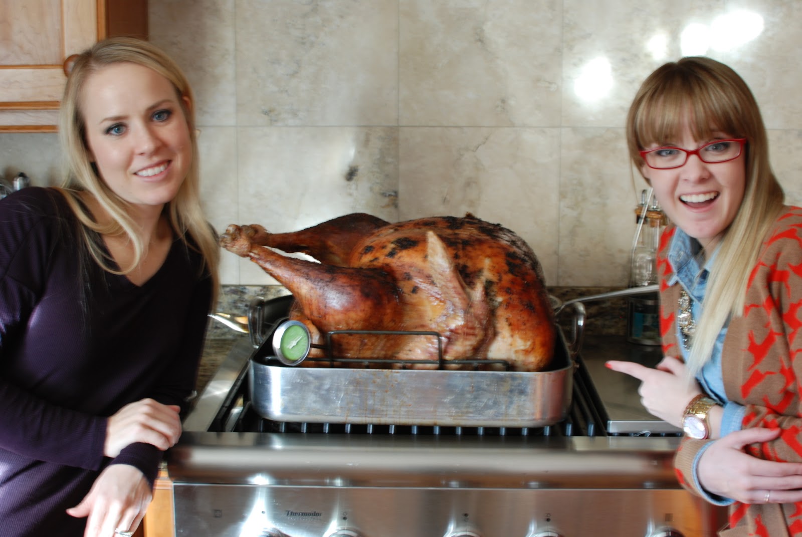 My two lovely daughters, Charees and Tiffany are standing in front of the bird after it had been removed from the oven.