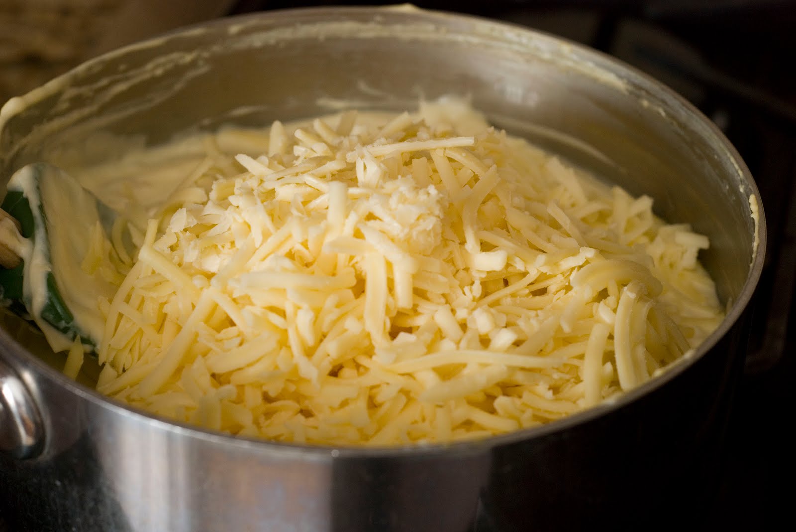 Add the shredded cheese. I’m using a nice sharp white cheddar cheese.