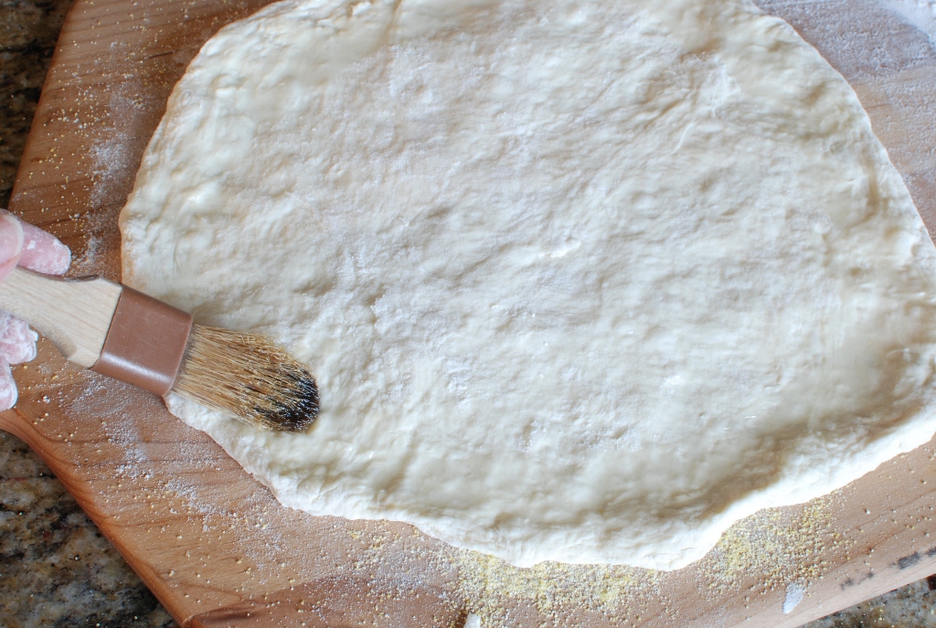 Brush the edges with the oil. This part really isn’t absolutely necessary. I just like the sheen and crunch it gives the crust.