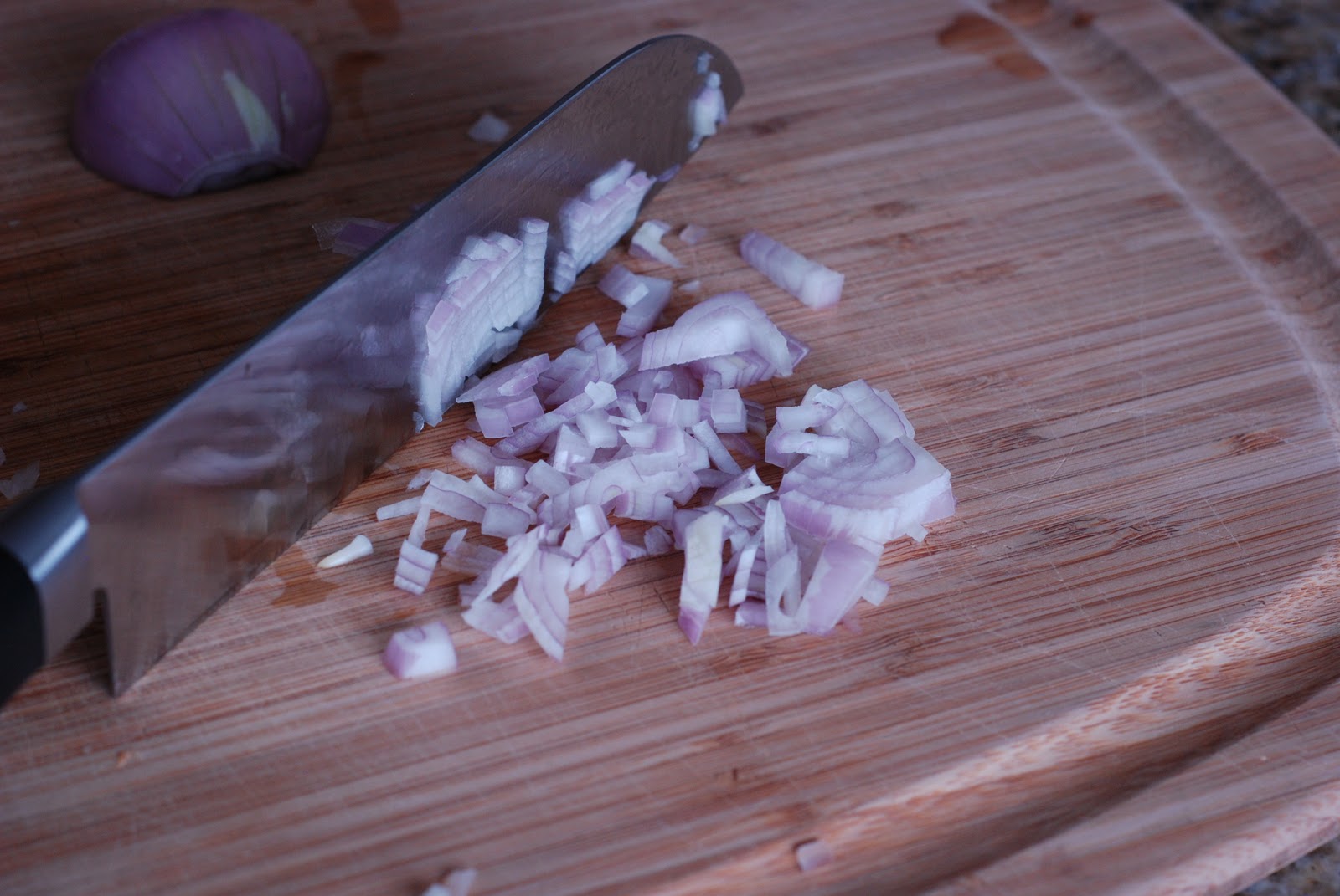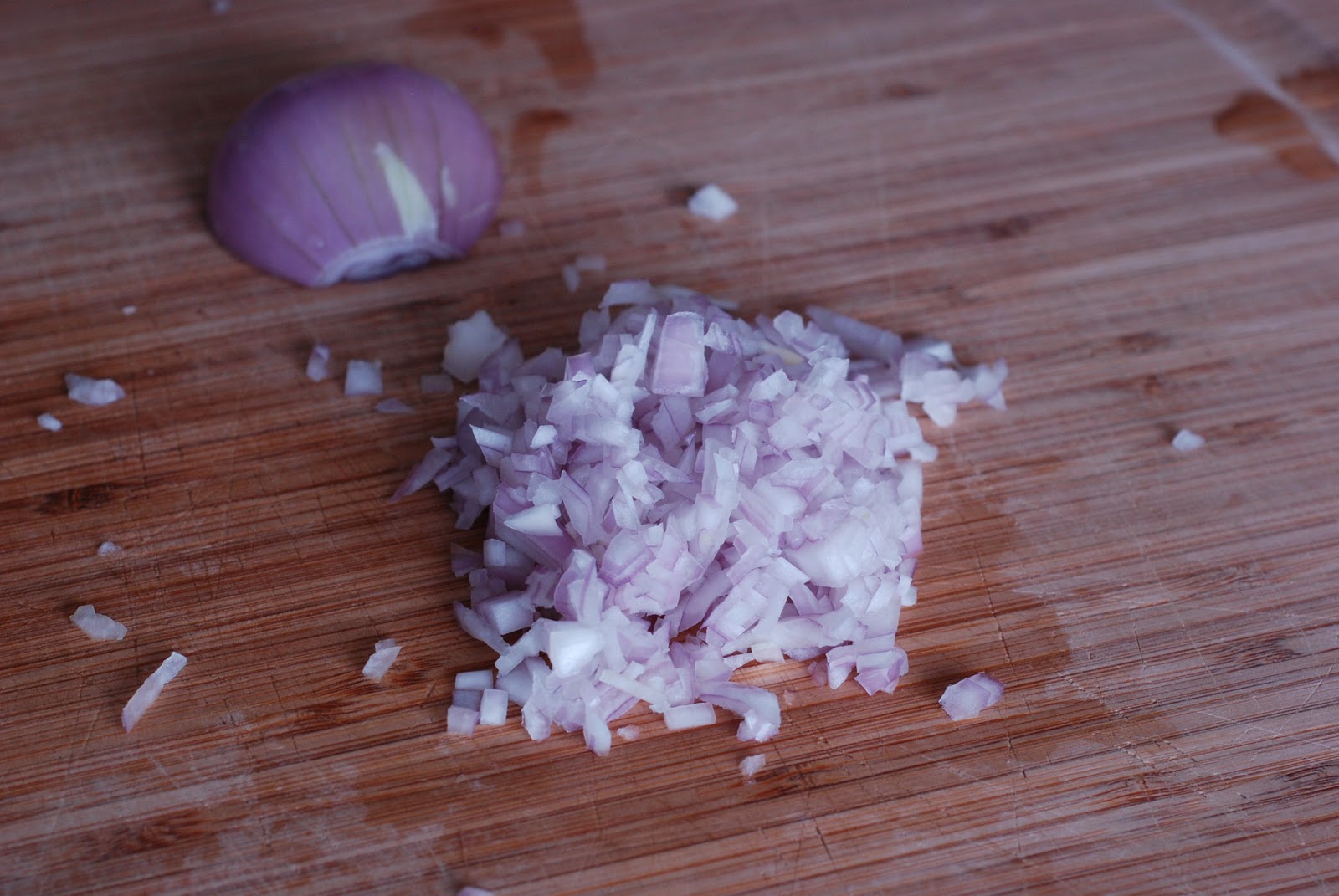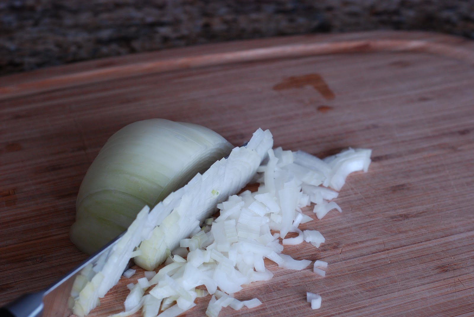 My onion was pretty large, so I will only need half of it. You want to chop the onion pretty fine.