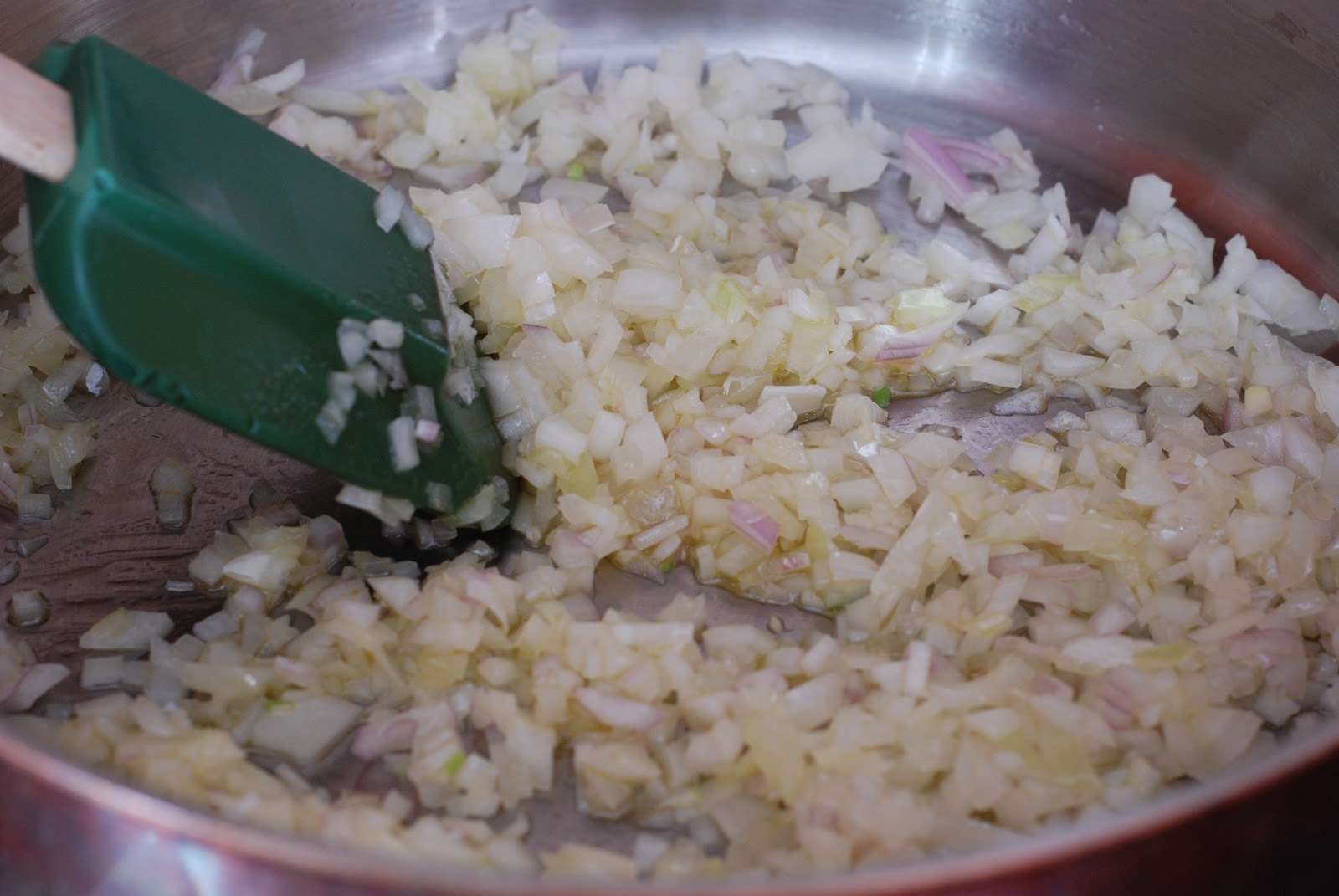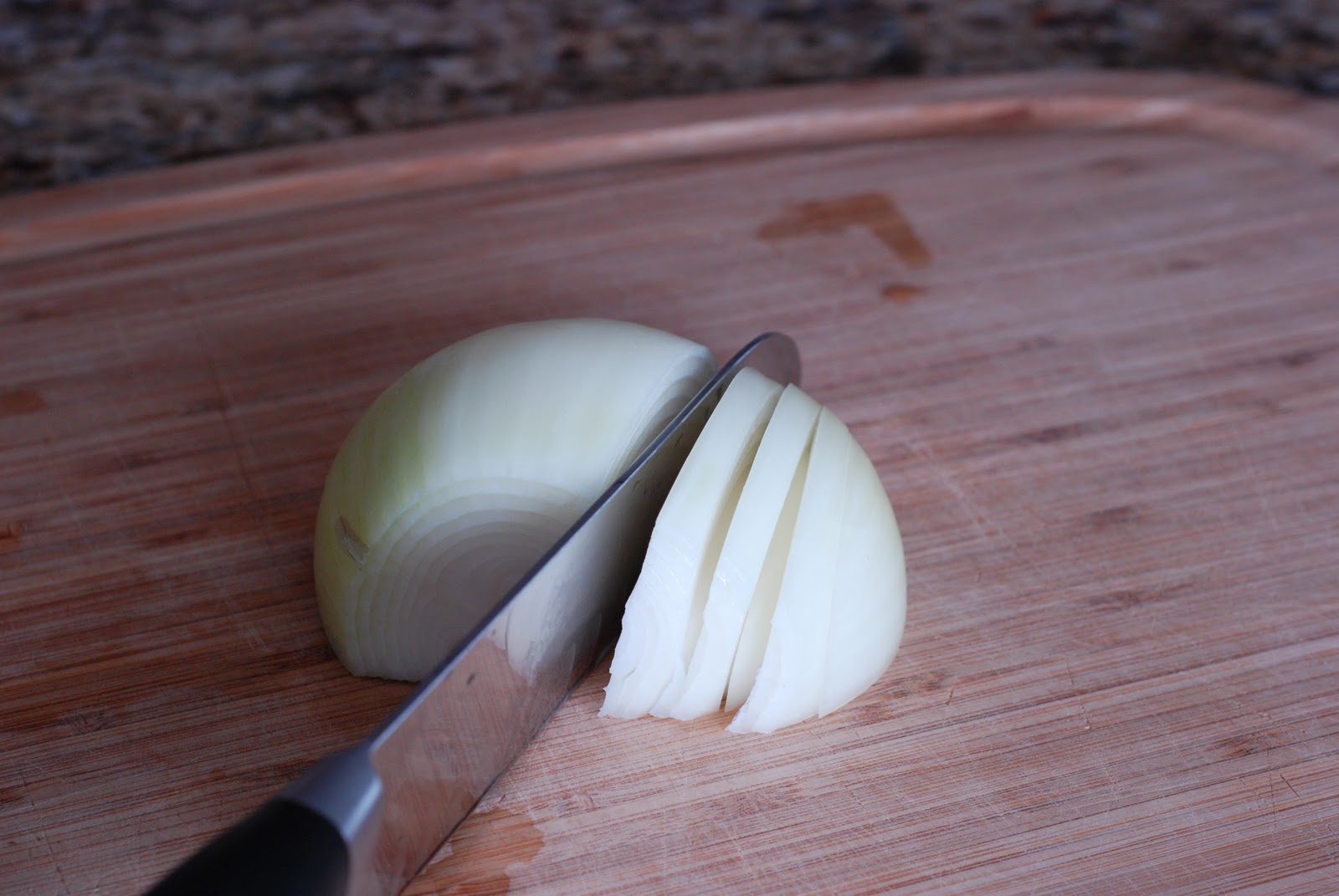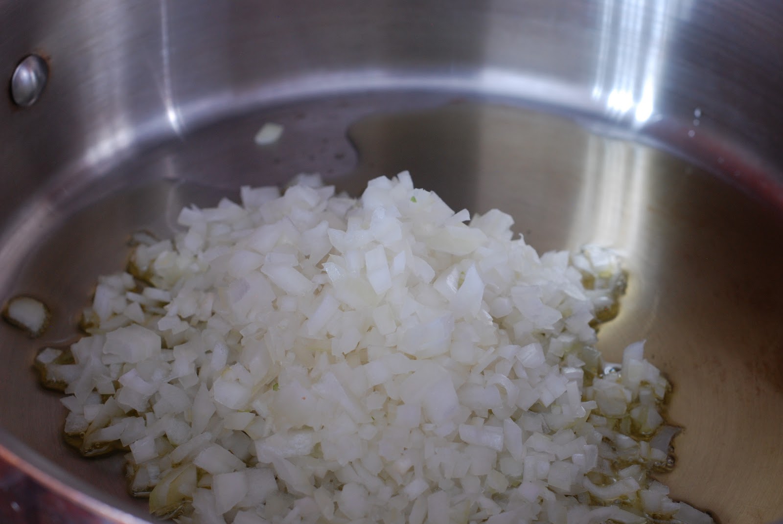 My onion was pretty large, so I will only need half of it. You want to chop the onion pretty fine.