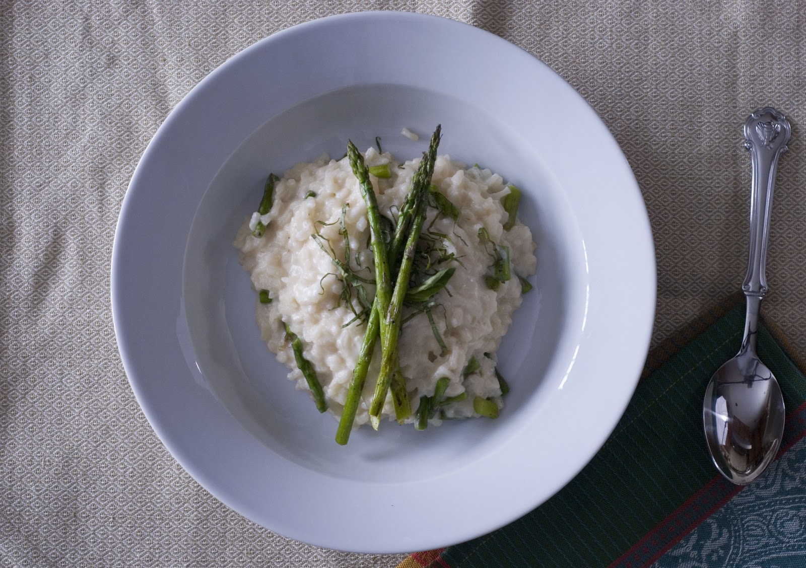 I want to add something to my risotto. I have some gorgeous thin asparagus.