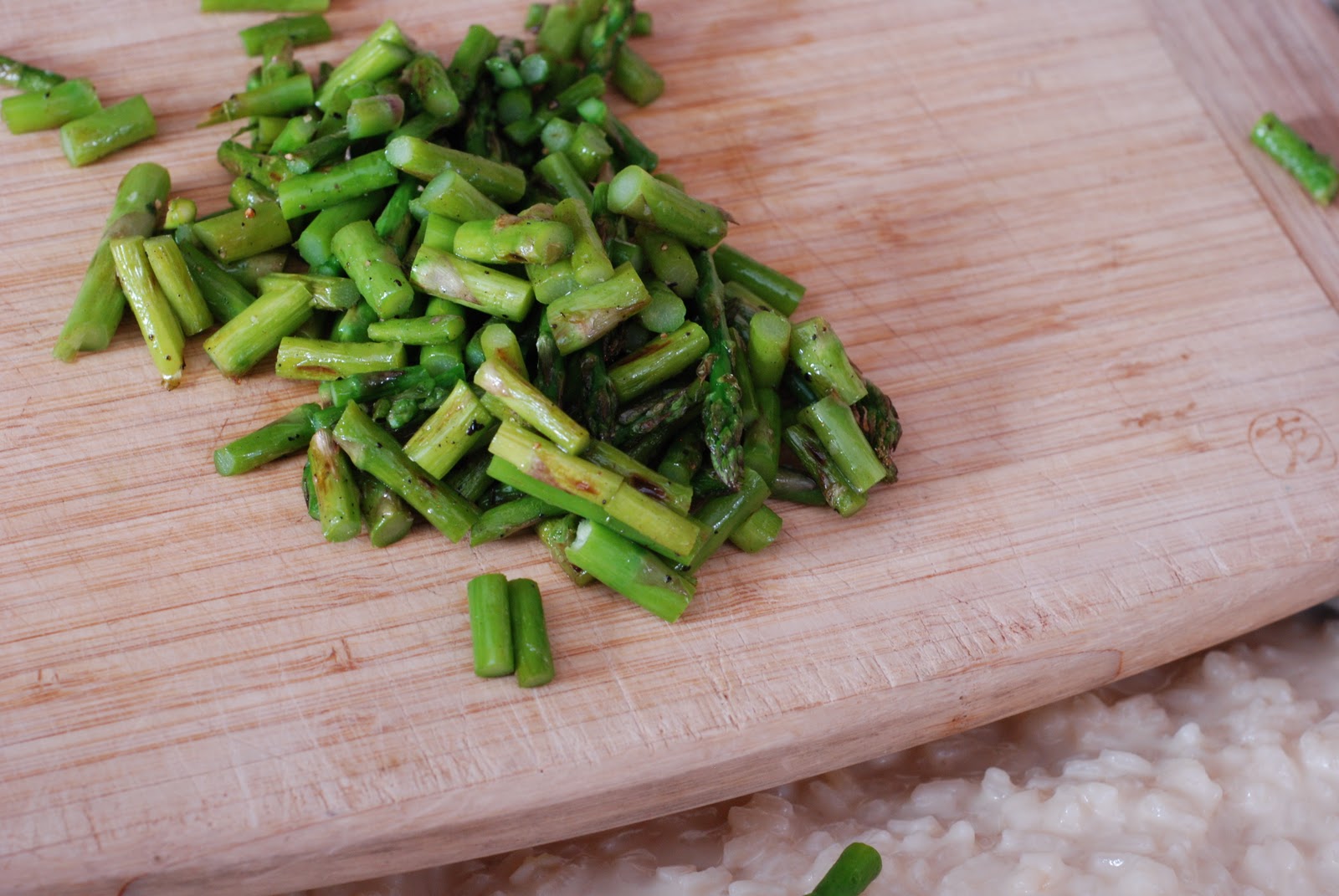 The risotto is getting close to being done so I’m going to hurry and grill some asparagus to stir in.
