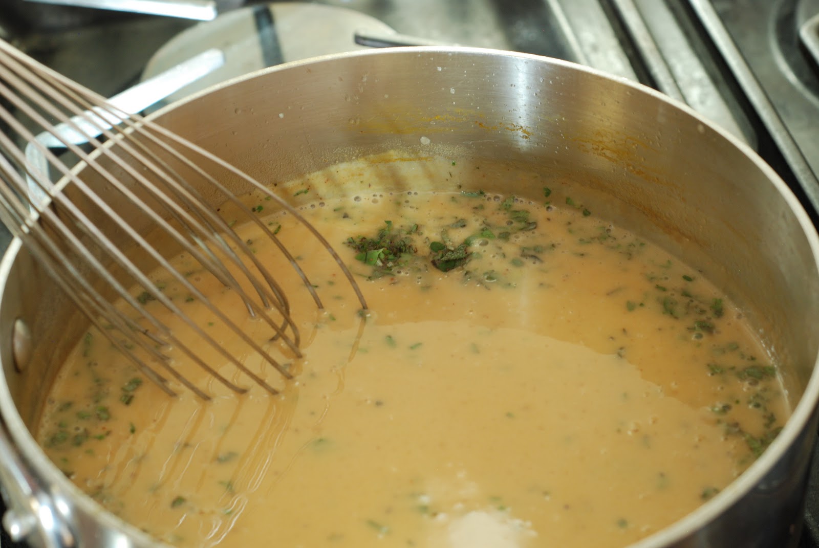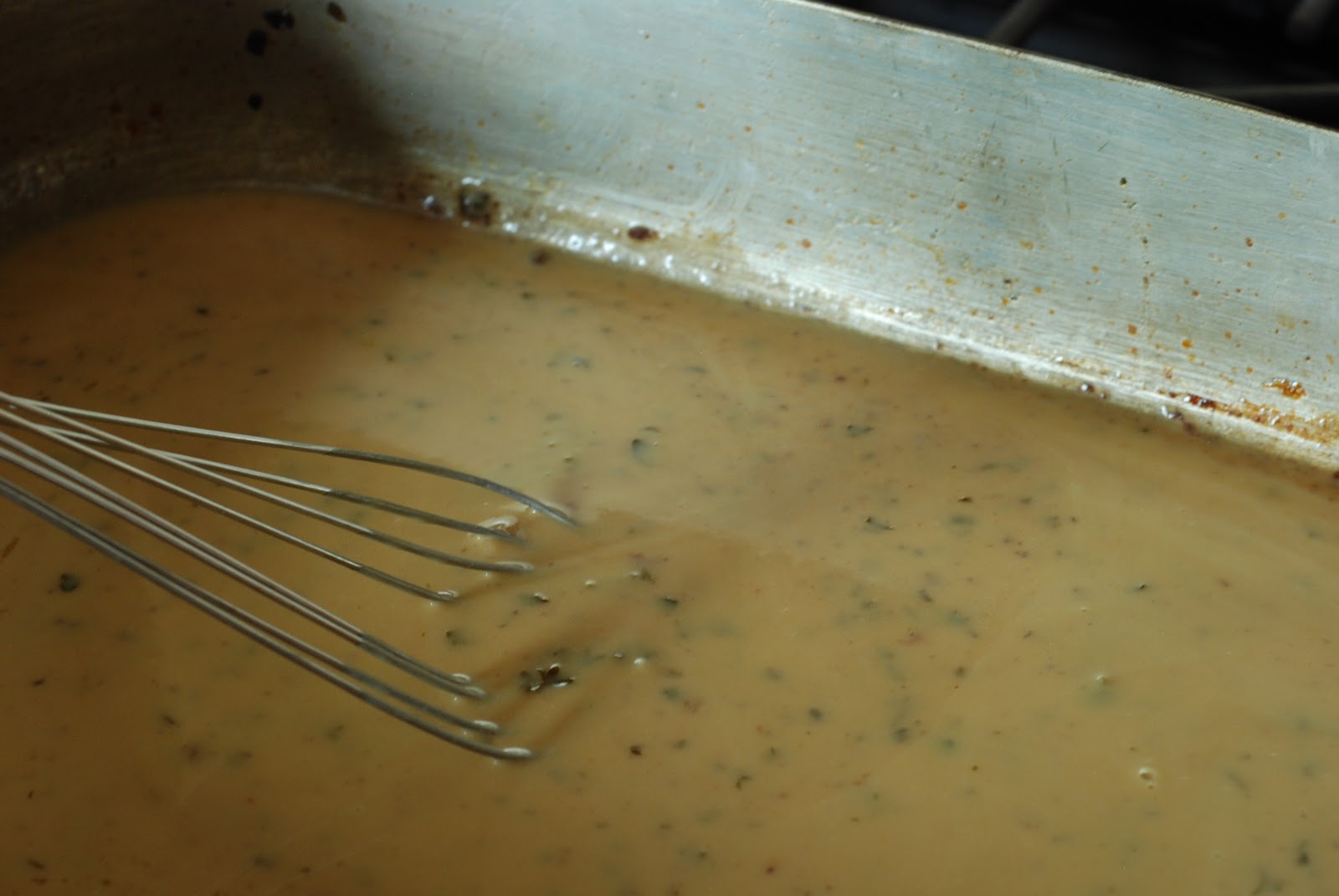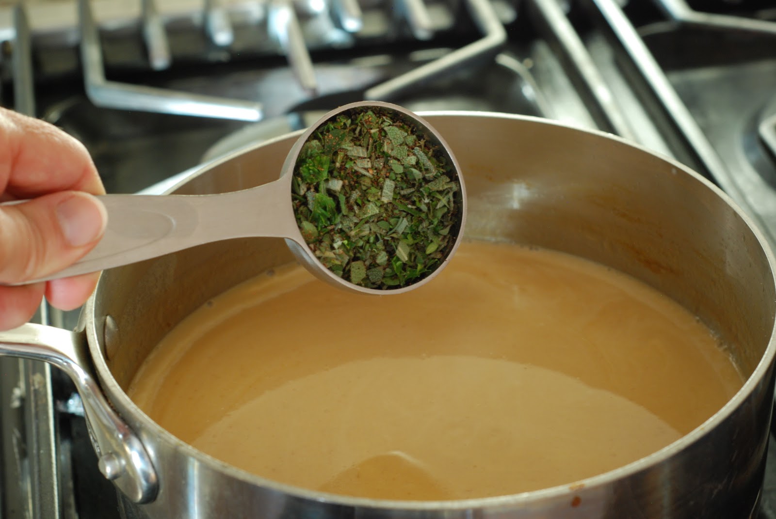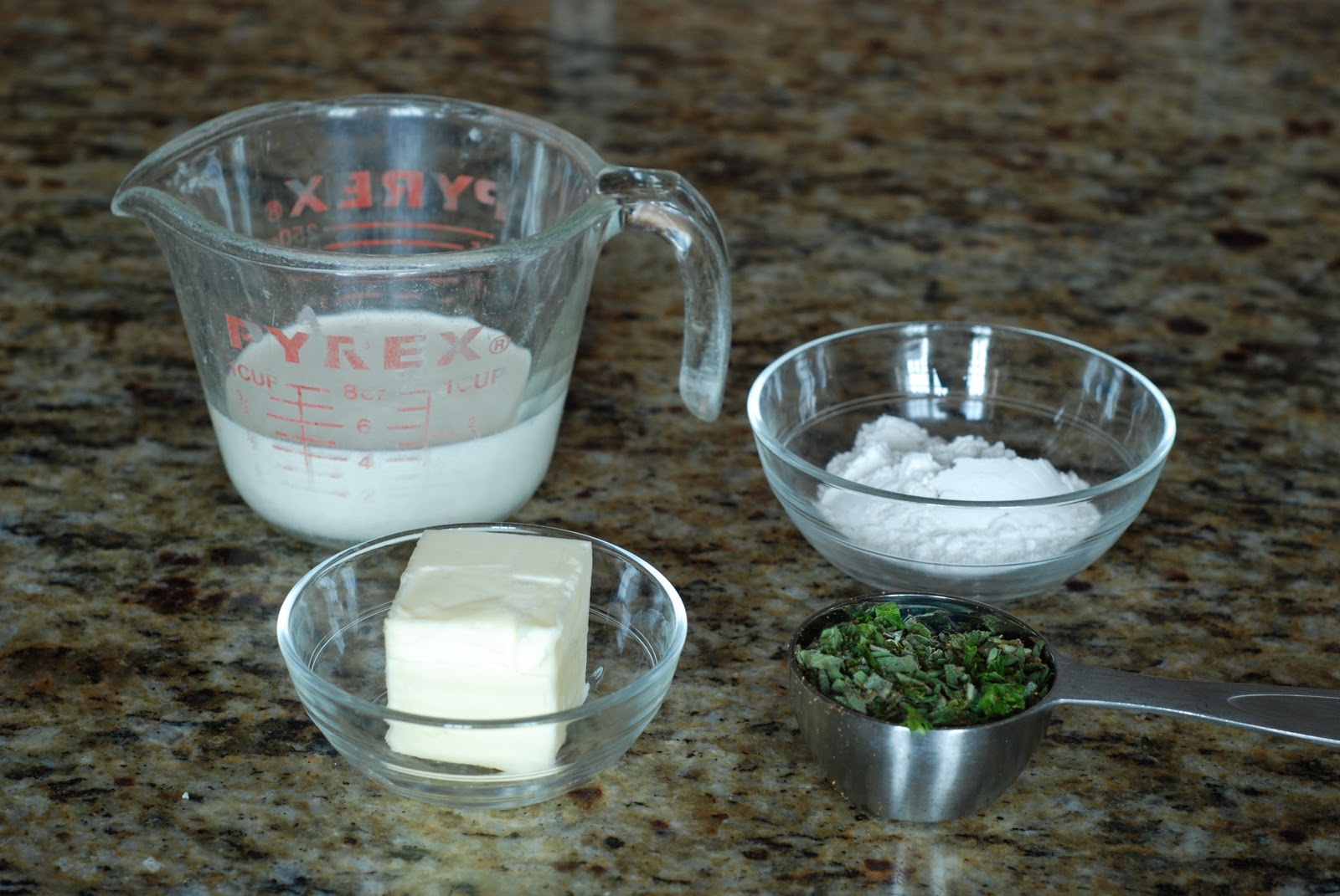 For the remaining gravy base you will need flour, butter, cream and the 1/4 cup fresh herbs that were reserved earlier.