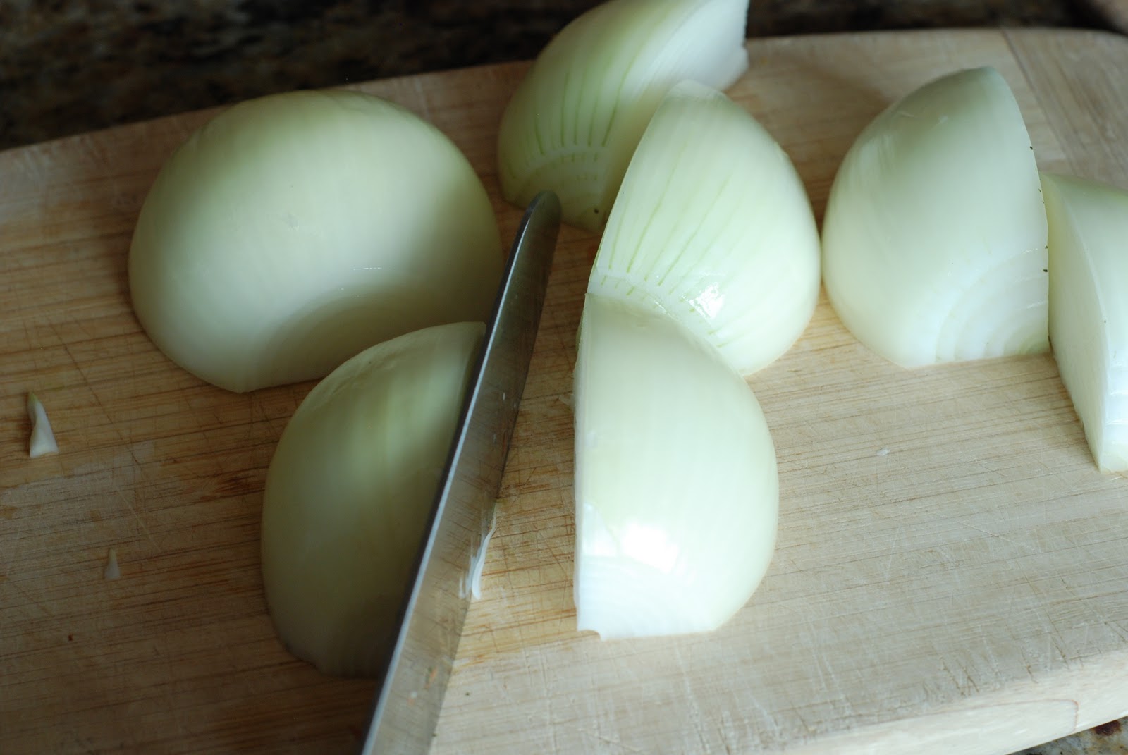 Place half of the onion quarters into the cavity of the bird along with the apples.