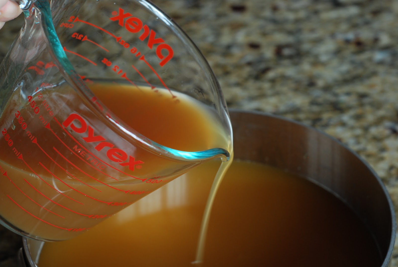 While the turkey is roasting I am going to make a gravy base. I am using low sodium turkey stock and apple cider. Chicken stock is fine to use, if turkey stock isn’t available.