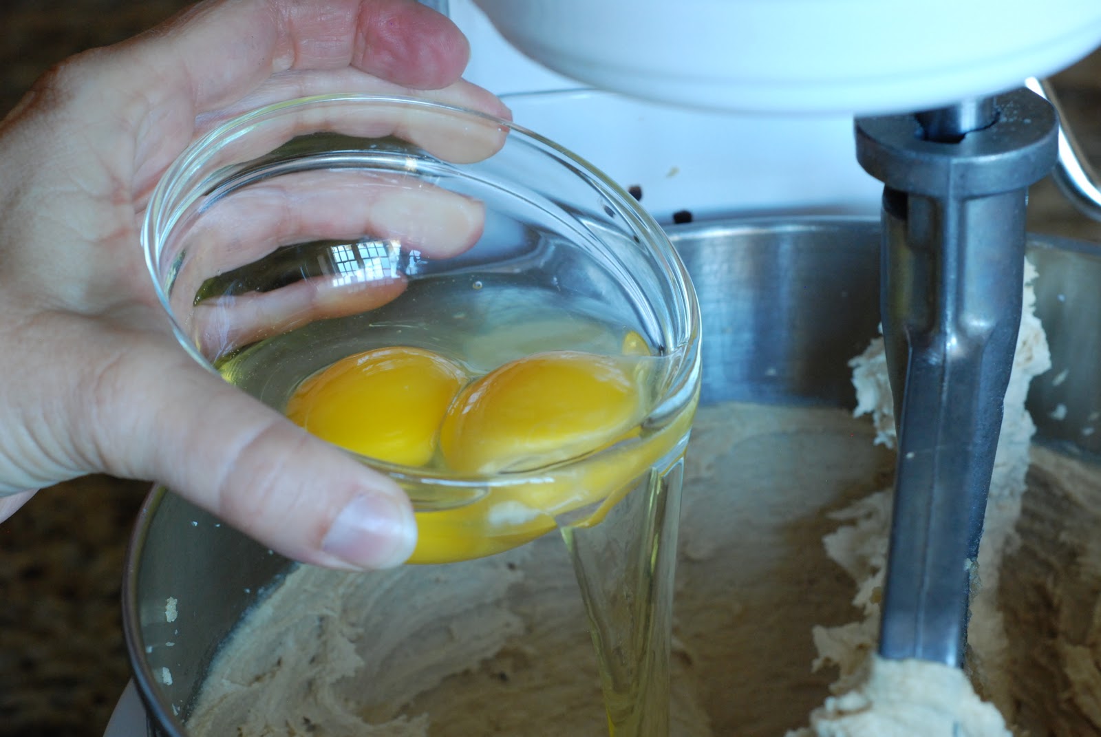 Mix in the two eggs.
