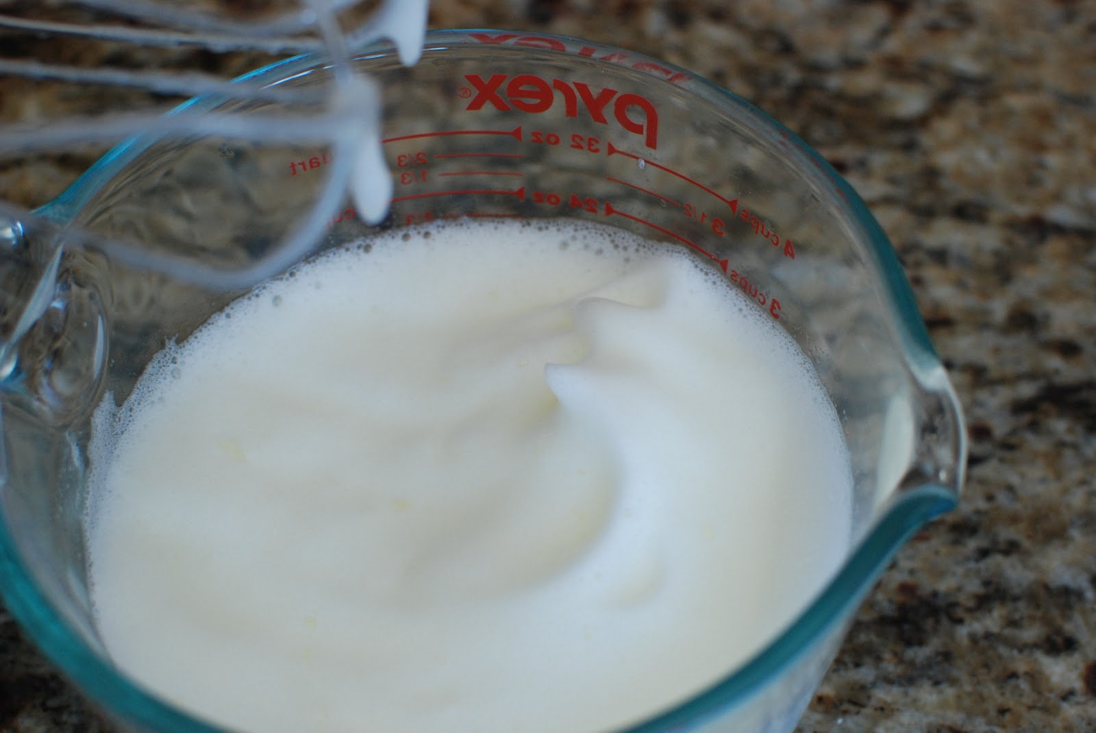 If you are at a higher altitude, just beat until the egg whites form soft peaks. Set aside.