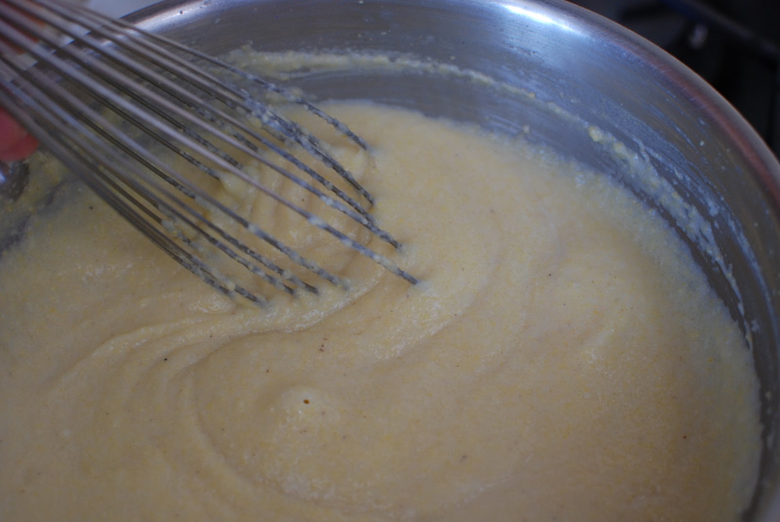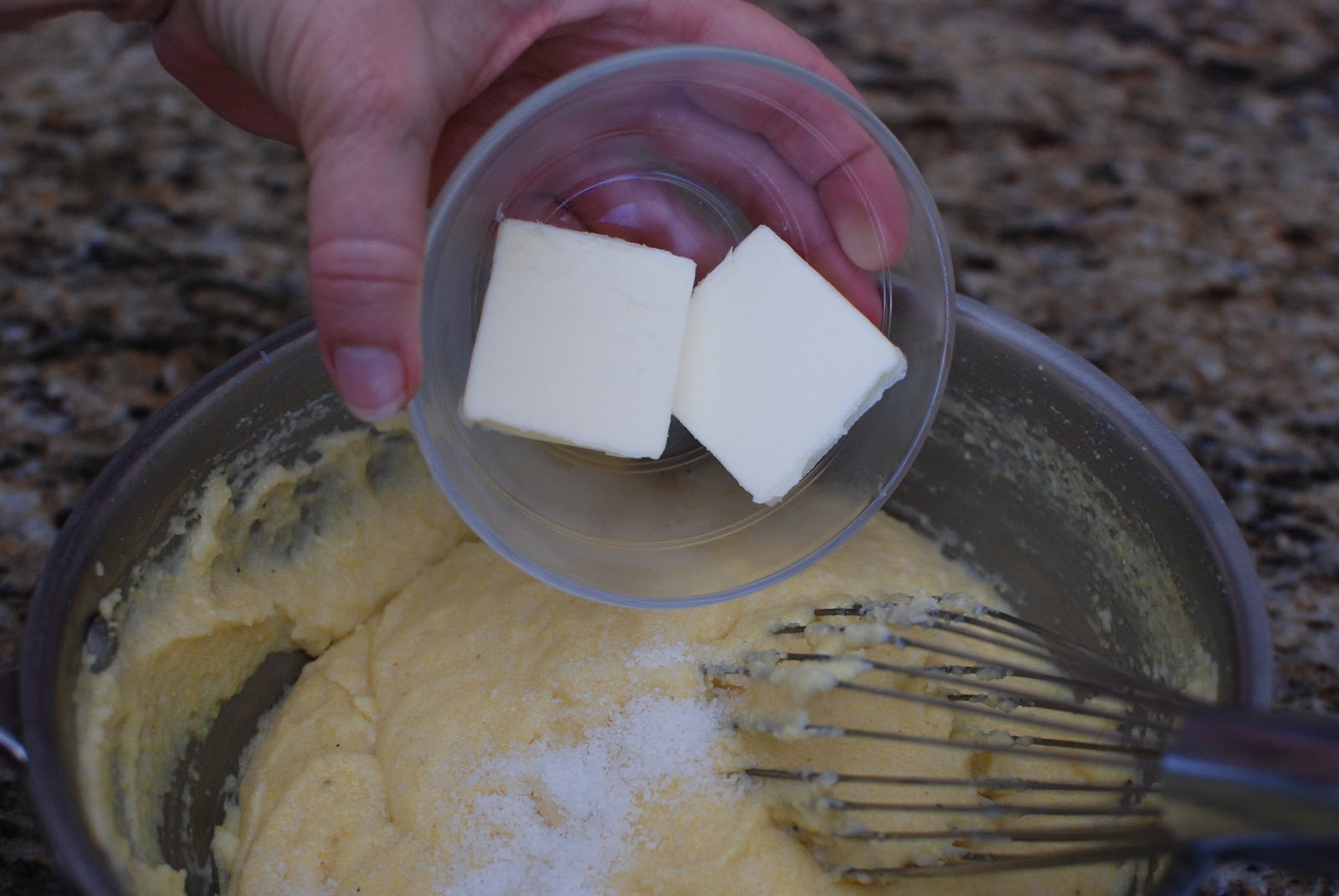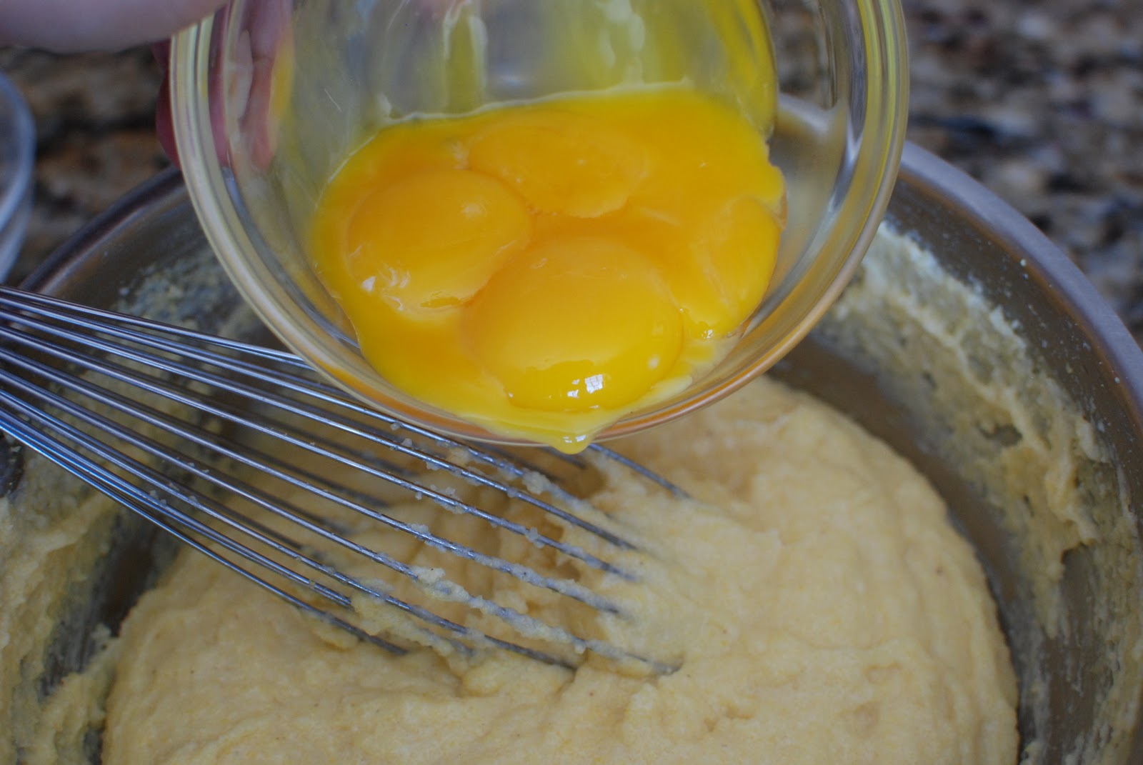 Let’s go over this! You will add 4 egg yolks into the hot cornmeal mixture ONE at a time beating like crazy AFTER each addition.
