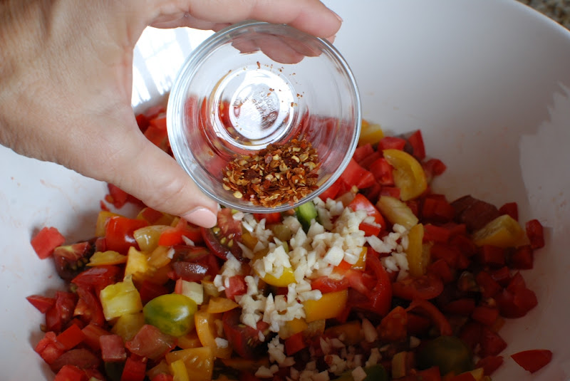 I decided to use a variety of heirloom tomatoes for a colorful pop.