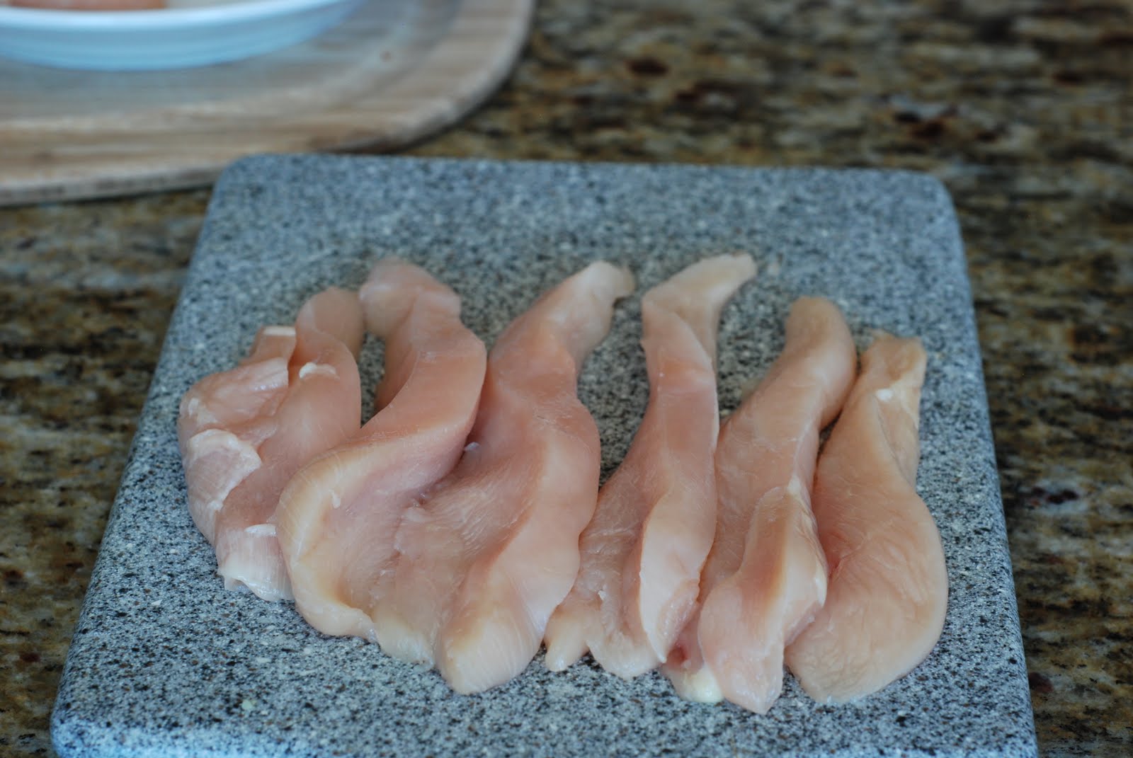 Cut the chicken breasts into 1/2-inch strips.
