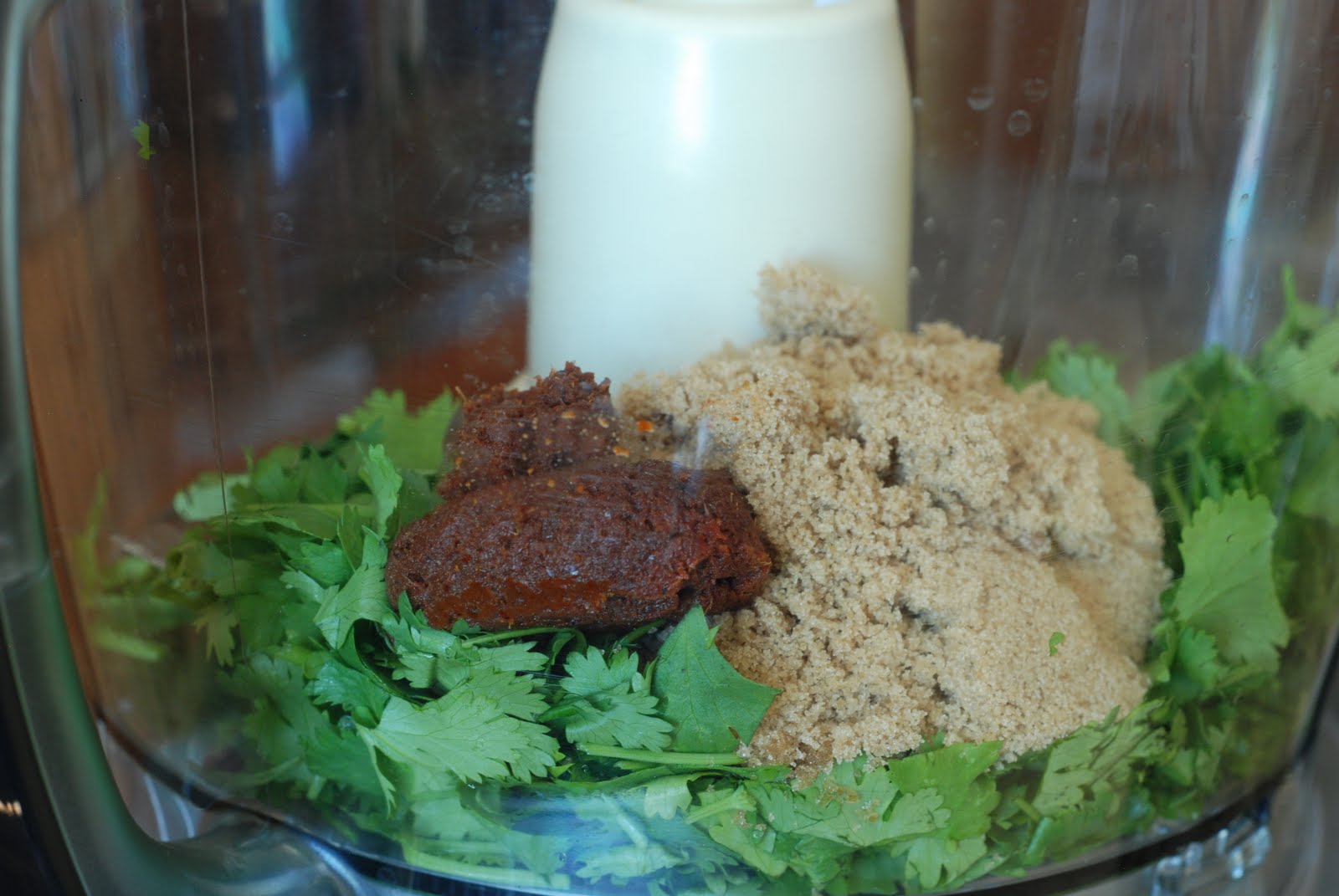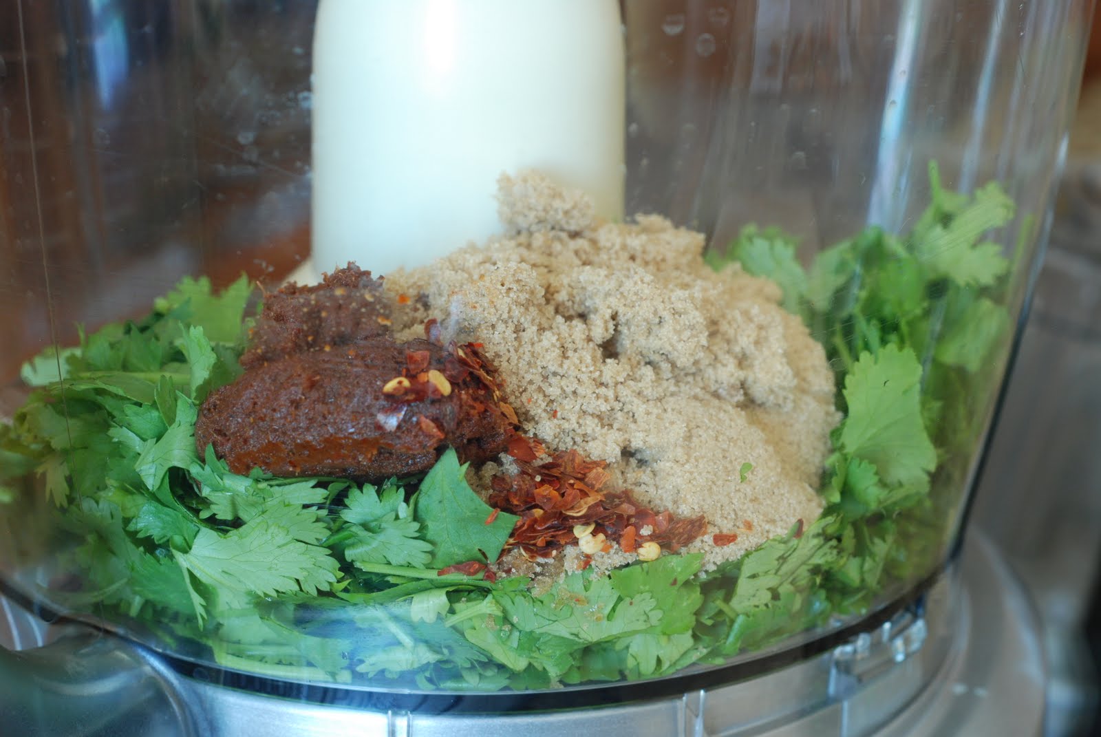 Put the cilantro into the bowl of the beautiful food processor that your husband bought you. You know I have four Cuisinart food processors right now. They need to quit redesigning them. Because I HAVE to have the new and improved model. Let me tell you this is my favorite model so far…ya I know who cares.