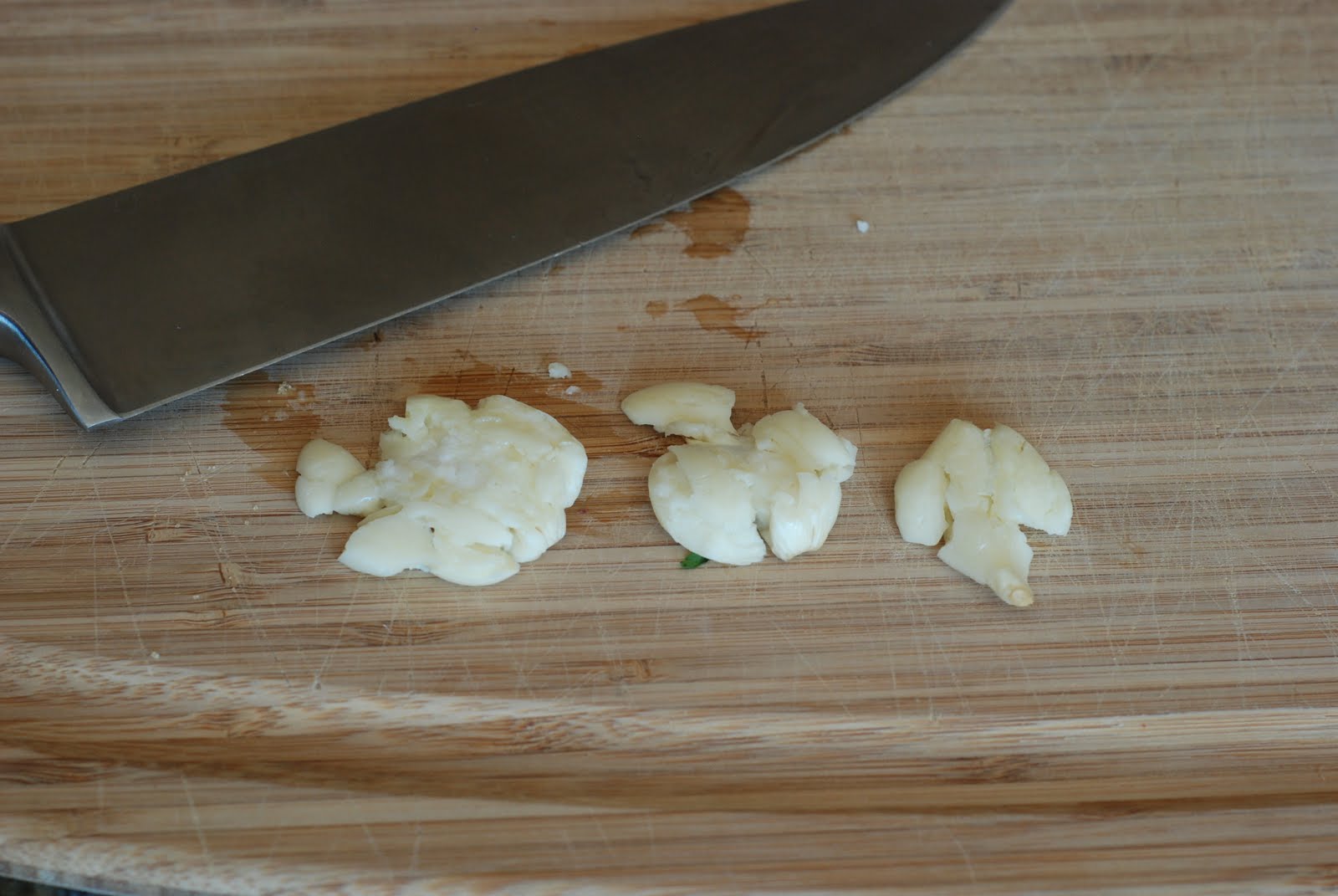 Smash the garlic with a knive.
