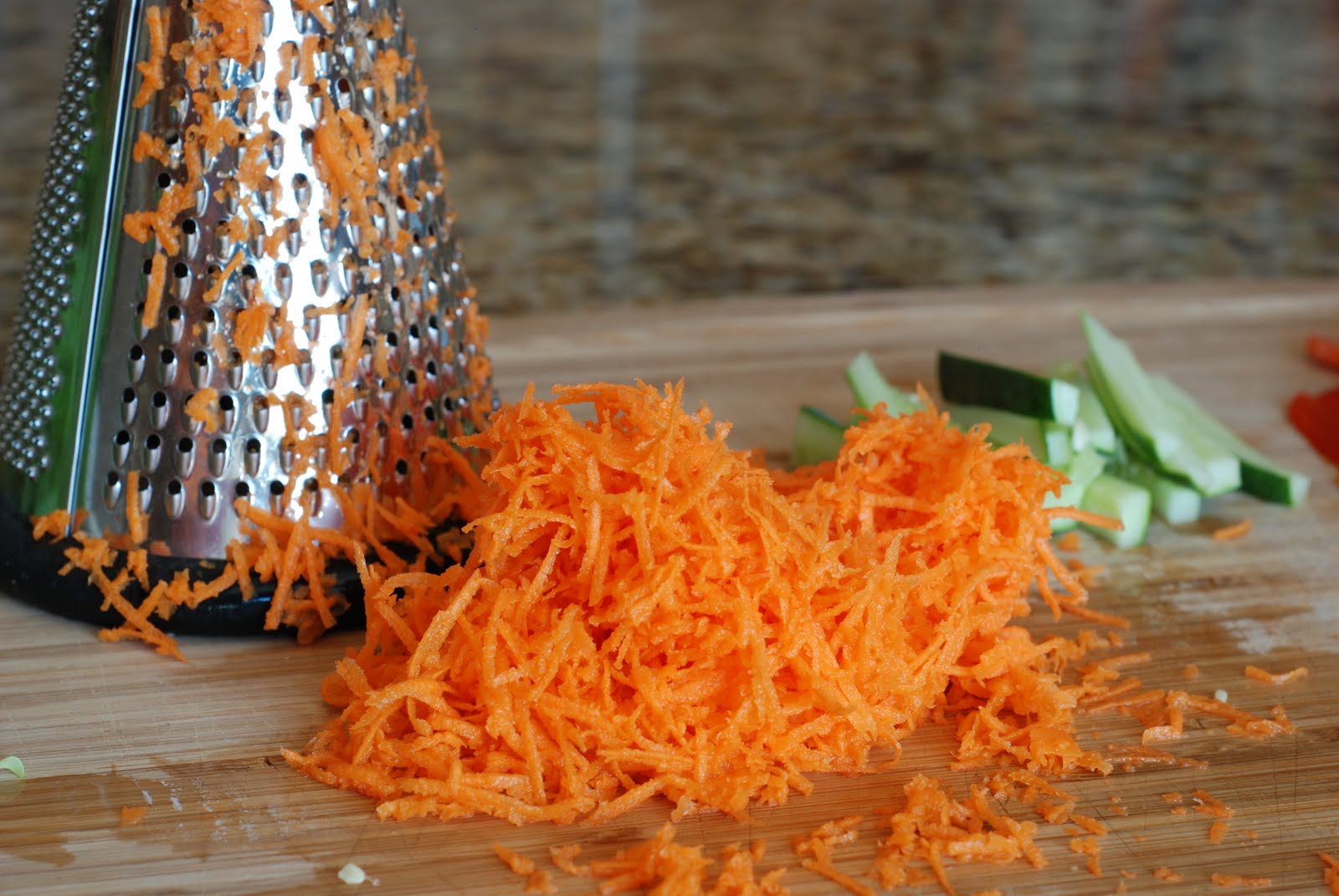 Finely shredd the peeled carrot.